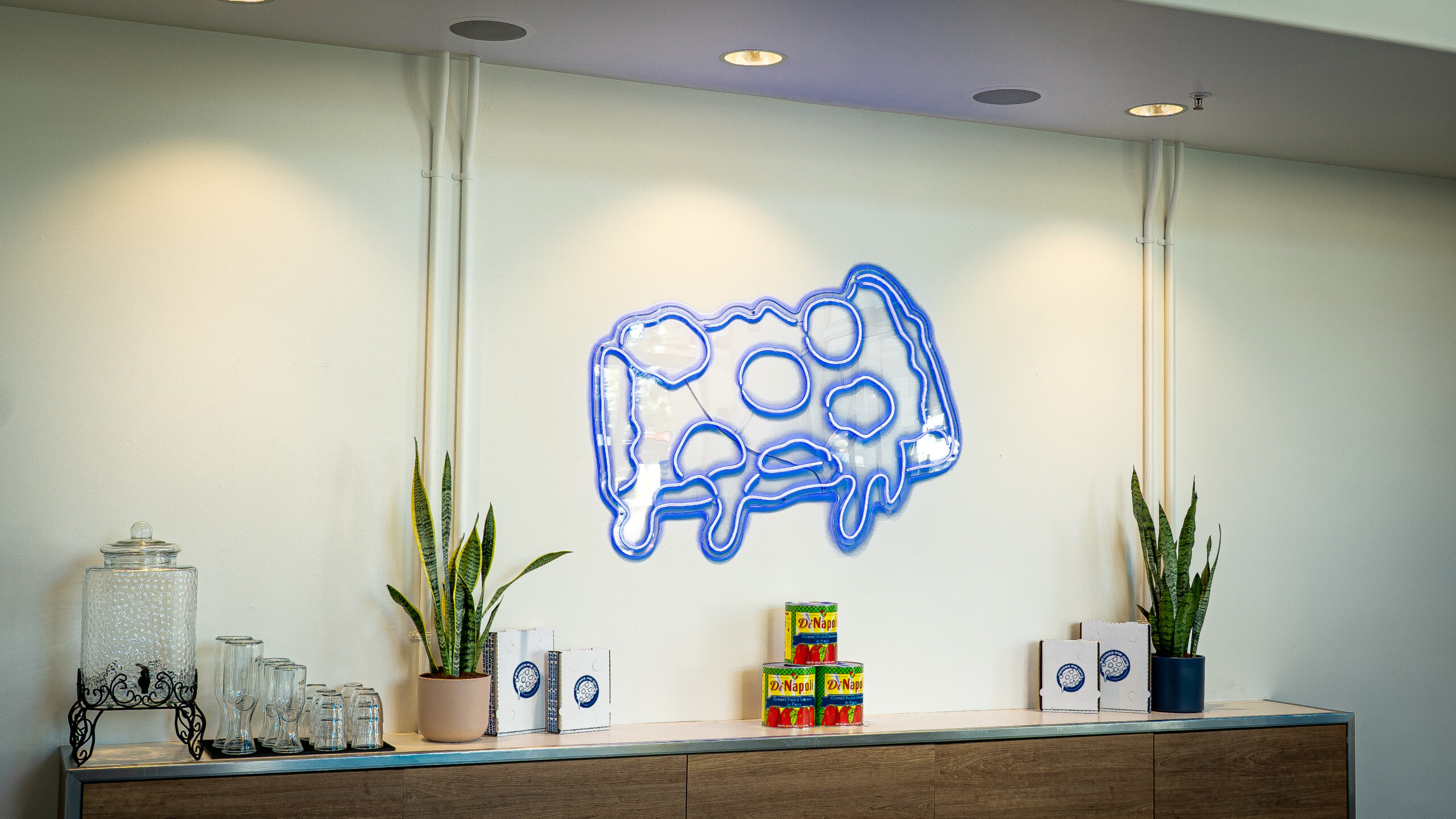 RGC partnered with Square Pie Guys and CAHA Design Group to refresh and refine the Palo Alto location, delivering targeted improvements to an existing restaurant space. The project focused on reinforcing the brand’s bold, fast-casual identity while improving durability and day-to-day operations. Scope of work included new commercial kitchen flooring, custom tile installation at the service counter, updated paint and wallpaper, upgraded lighting throughout the space, and the addition of a new take-out window to support efficient order flow. All improvements were carefully coordinated to enhance the customer experience while maintaining a clean, modern aesthetic consistent with Square Pie Guys’ growing footprint.